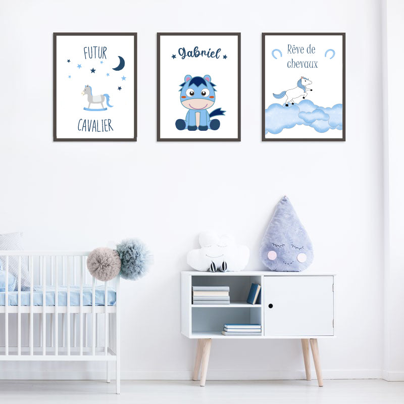 Ensemble de 3 tableaux modèles "FOALY", "DREAM" et "YOUNG RIDER" pour décorer tout en douceur la chambre d'un enfant